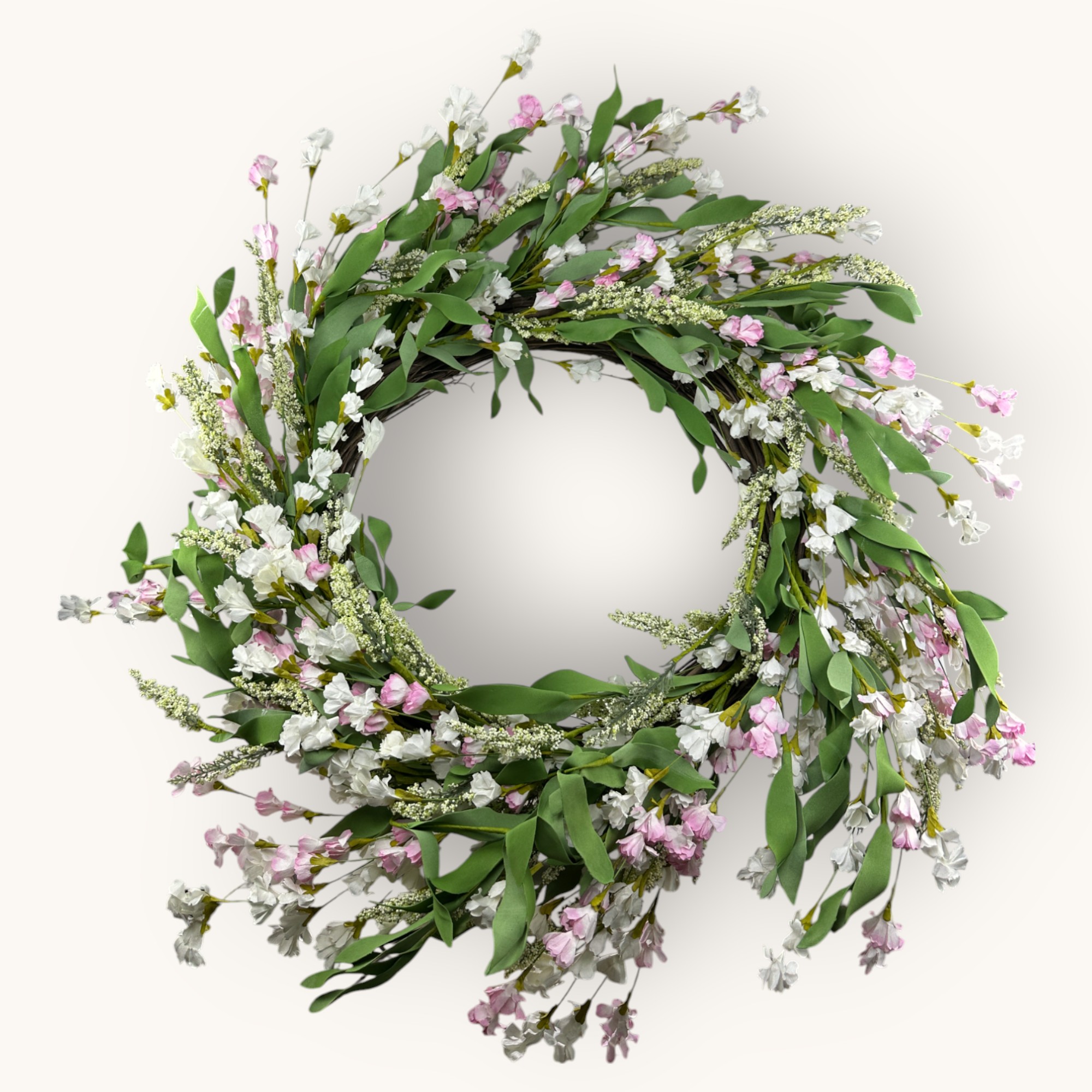 Sztuczny wianek pastelowy z liśćmi i kwiatami